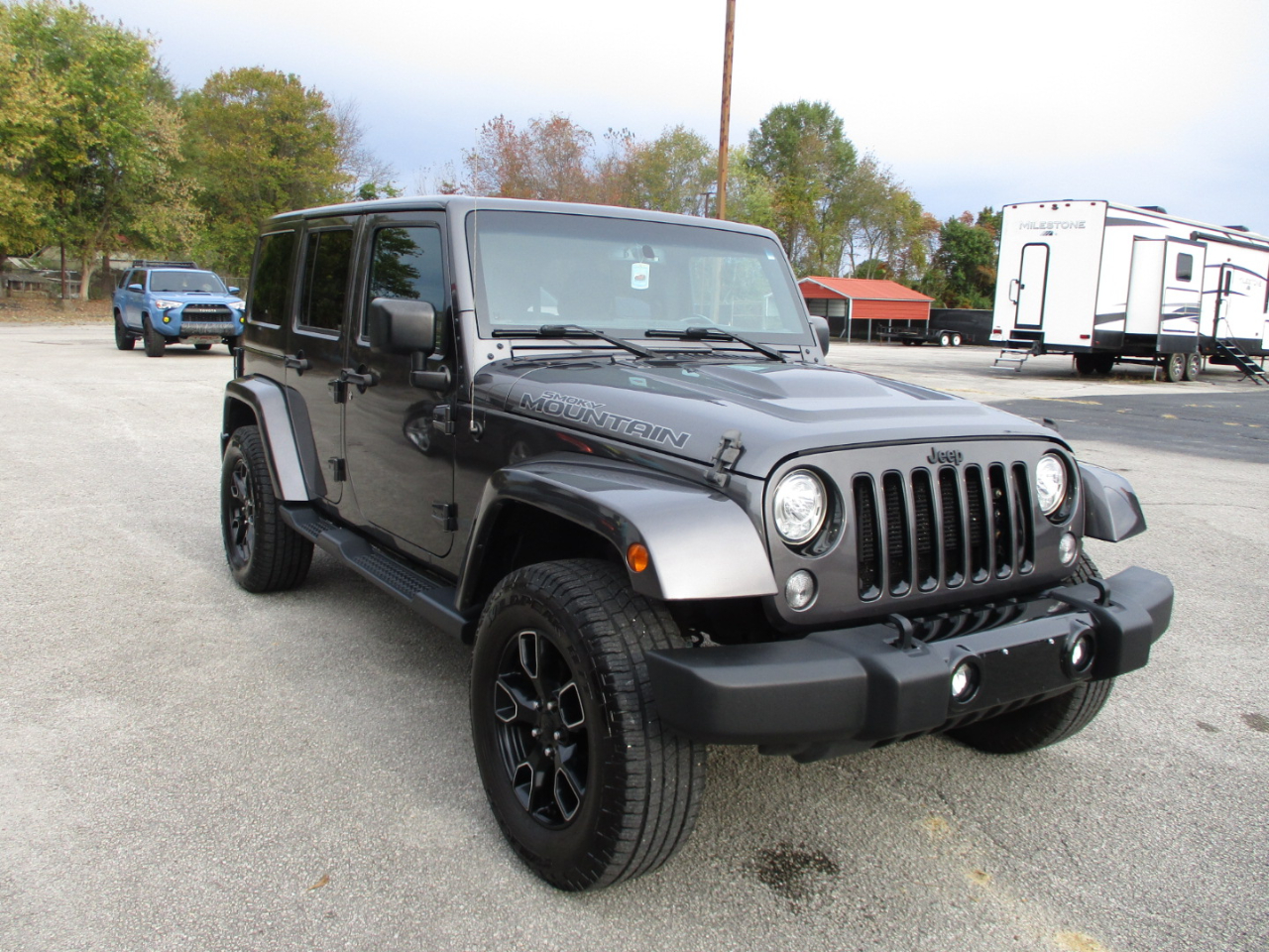 2017 Jeep Wrangler Smoky Mountain Unlimited Edition Gray Metallic with Black Leather, 3.6L V6, Gas, RWD w/4x4, Perfect Carfax 114,761 Miles, #1114077 True Sales Price $19,900. Call 731-352-0441 M-F 8 a.m.-5 p.m. or Call or Text 731-697-9801 anytime for purchase information! - For Sale By Gary Simmons Lease-Sales, Inc. - www.garysimmons-autolease-sales.com - Need Financing? - Apply Online at https://www.garysimmons-autolease-sales.com/creditapp